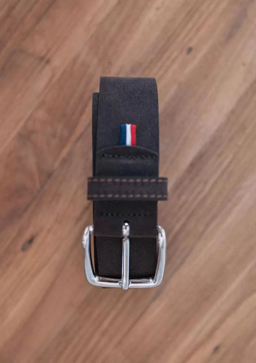 Détails :Ceinture à boucleTannage au chromeFabriqué en FranceCroûte de cuir (bovin)Doublure en croûte de cuirBoucle…