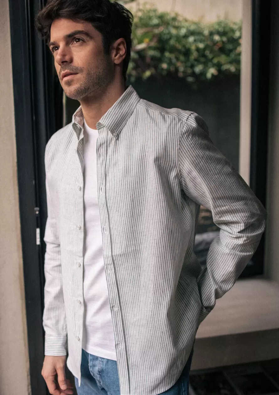 Nous vous conseillons de laver votre chemise en lavage délicat à 30°C et de ne pas la placer dans un sèche-linge. Privilégiez un séchage à plat et un repassage sur l’envers.