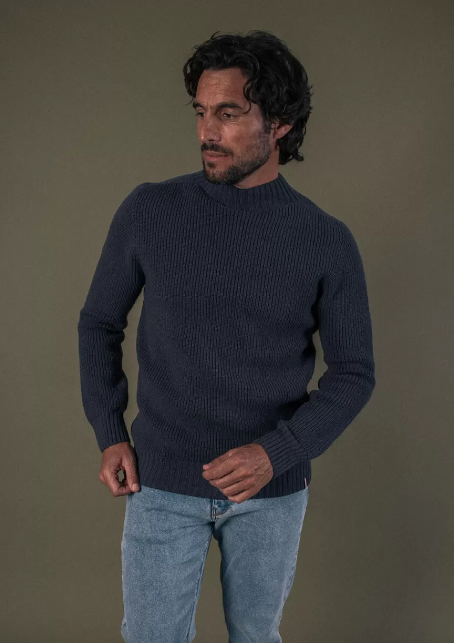 Avec son col cheminée et sa grosse maille en 100% laine, le pull SAISON anthracite vous protègera du froid de l’hiver.